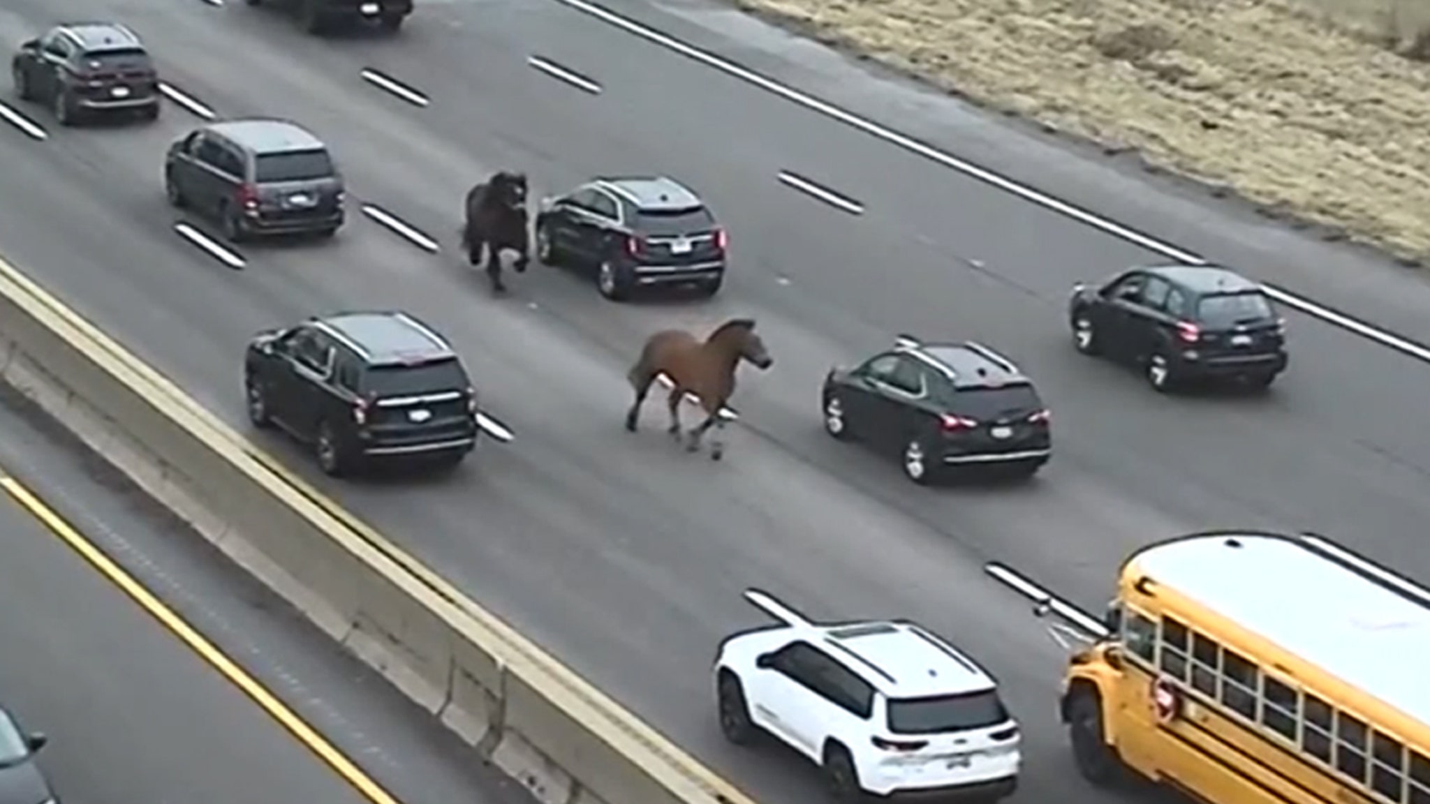 Two Horses Gallop Freely on Cleveland Highway After Escaping from Stable